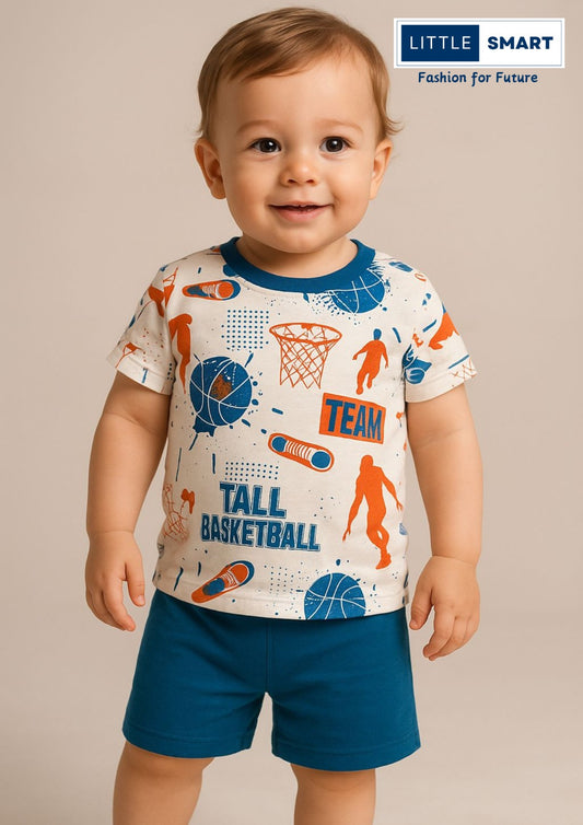 White Basketball, Grey Lion & Green Bear Prints – Pack of 3 | Soft Cotton Summer Wear” [TN-01]
