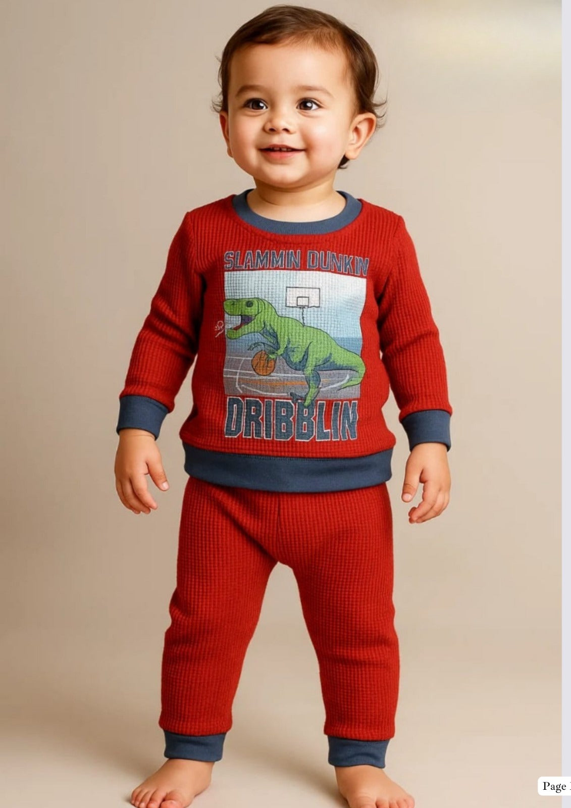 Soft and cozy infant pyjama set made from skin-friendly, breathable fabric. Includes top and matching pyjamas for comfort during sleep, playtime, and daily wear. Ideal for babies.